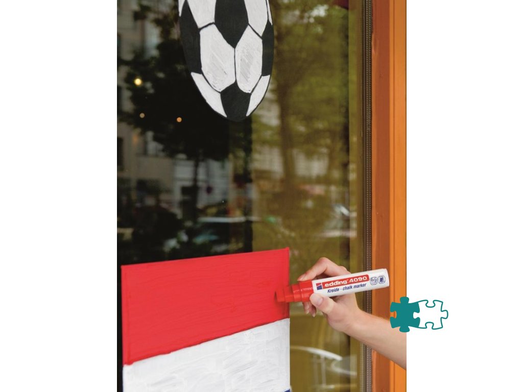 Popisovač s kriedovým atramentom neutrálnej vône na báze vody. Vhodný na sklo a takmer všetky druhy nepórovitých povrchov. Atrament rozpustný vo vode, stierateľný vlhkou handričkou. Hrot zrezaný, šírka stopy 4---15 mm. Väčšie balenie 5 ks.Farba: červená
