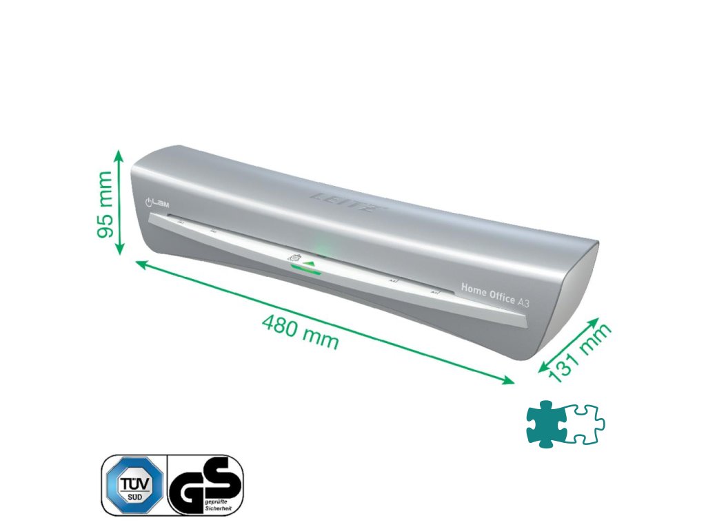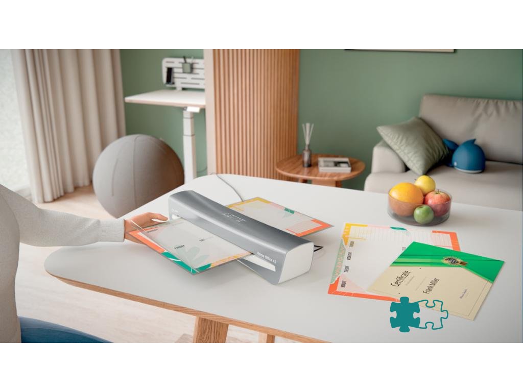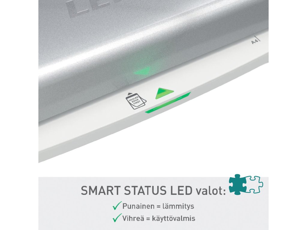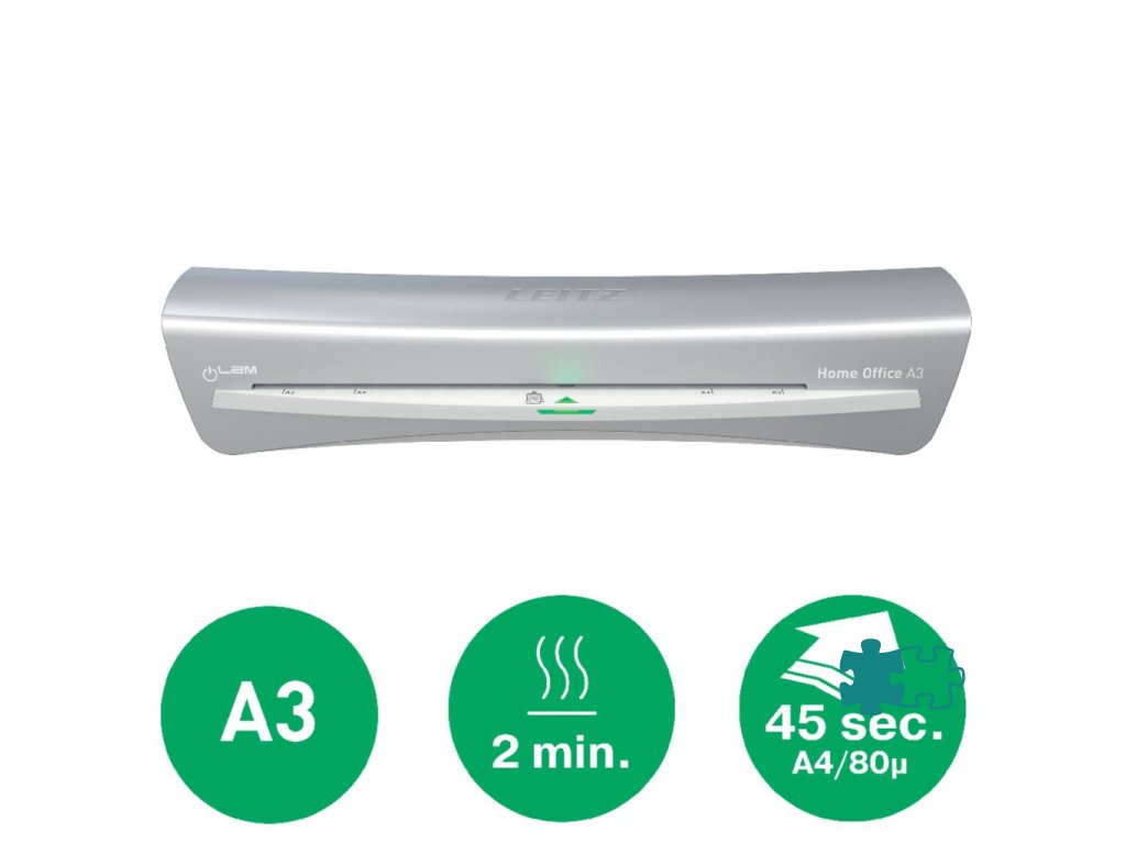 Štýlový a kompaktný laminovací prístroj Leitz iLAM Home Office spája moderný dizajn s funkčnosťou. Tento pre obsluhu prívetivý laminátor vo formáte A3 ponúka rýchle 2-minútové zahriatie a dokument A4 v 80-mikrónovej kapse na laminovanie zalaminuje už za obyčajných 45 sekúnd. Kolískový prepínač umožňuje výber z troch úrovní hrúbky kapsy na všestranné použitie a splnenie všetkých požiadaviek na laminovanie. Hladkú prevádzku zabezpečuje mechanizmus proti zaseknutiu kapsy tak, že bez námahy odstráni akékoľvek zaseknuté alebo zle vložené vrecká na laminovanie. Inovatívna inteligentná stavová LED dióda uľahčuje používanie pomocou intuitívnych svetiel a zvukov: červená dióda znamená zahrievanie, zelená so zvukovým upozornením oznamuje pripravenosť na laminovanie, blikajúca červená dióda znamená automatické vypnutie po 15 minútach nečinnosti. Chráňte svoje dokumenty rýchlo, efektívne a štýlovo. Určené na kapsy od 75 do 125 mikrónov. TUV/GS, CE certifikácia. Strieborná a biela farba.