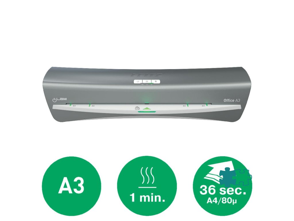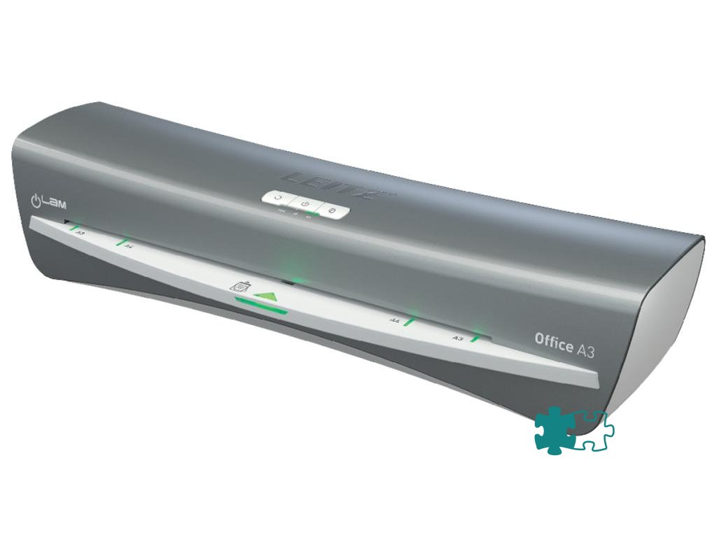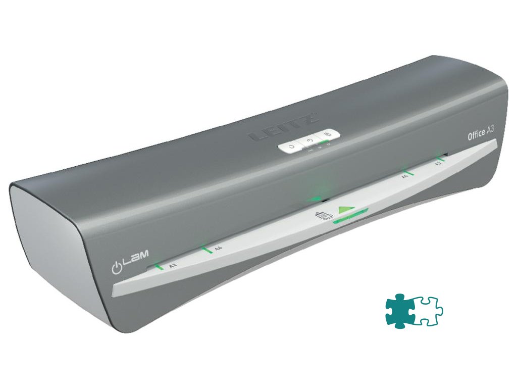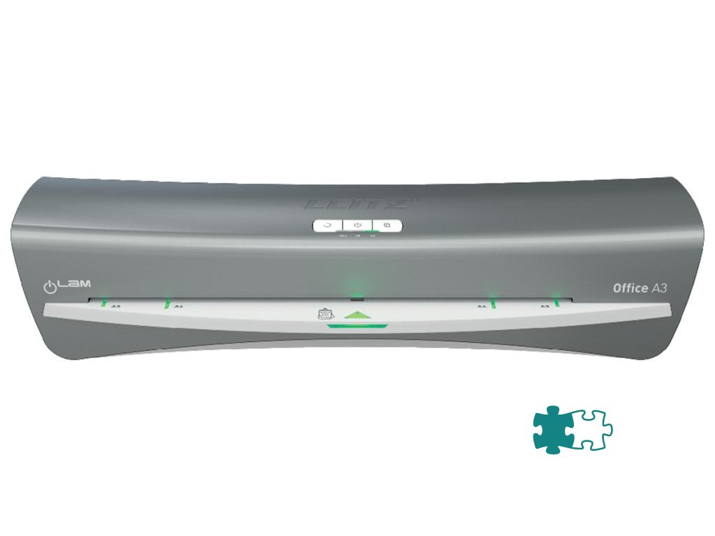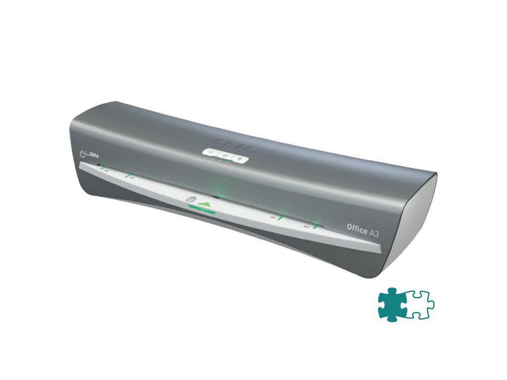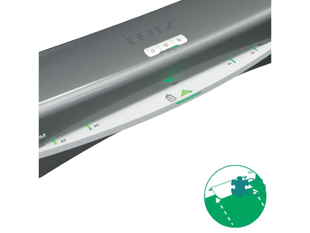 Moderný a kompaktný laminovací prístroj Leitz iLAM Office spája štýl a efektivitu. Tento laminátor vo formáte A3 garantuje ľahké laminovanie, vyznačuje sa rýchlym intervalom zahrievania len za 1 minútu, dokument A4 v 80-mikrónovej kapse na laminovanie zalaminuje už za obyčajných 36 sekúnd. Pomocou intuitívneho dotykového panelu si môžete vybrať jedno z troch nastavení hrúbky vrecka, prípadne využiť tlačidlo spätného chodu pre ľahké vybratie zaseknutej laminovacej kapsy. Inovatívna stavová SMART LED dióda využíva svetelné a zvukové signály: červená dióda znamená zahrievanie, zelená so zvukovým upozornením oznamuje pripravenosť na laminovanie, blikajúca červená dióda znamená automatické vypnutie po 15 minútach nečinnosti. Navyše šikovné vstupné navádzacie LED diódy zabezpečujú dokonalé vyrovnanie vrecka tak, aby sa zabránilo jeho zaseknutiu. Určené na kapsy od 75 do 125 mikrónov. TUV/GS, CE certifikácia. Šedá a biela farba.