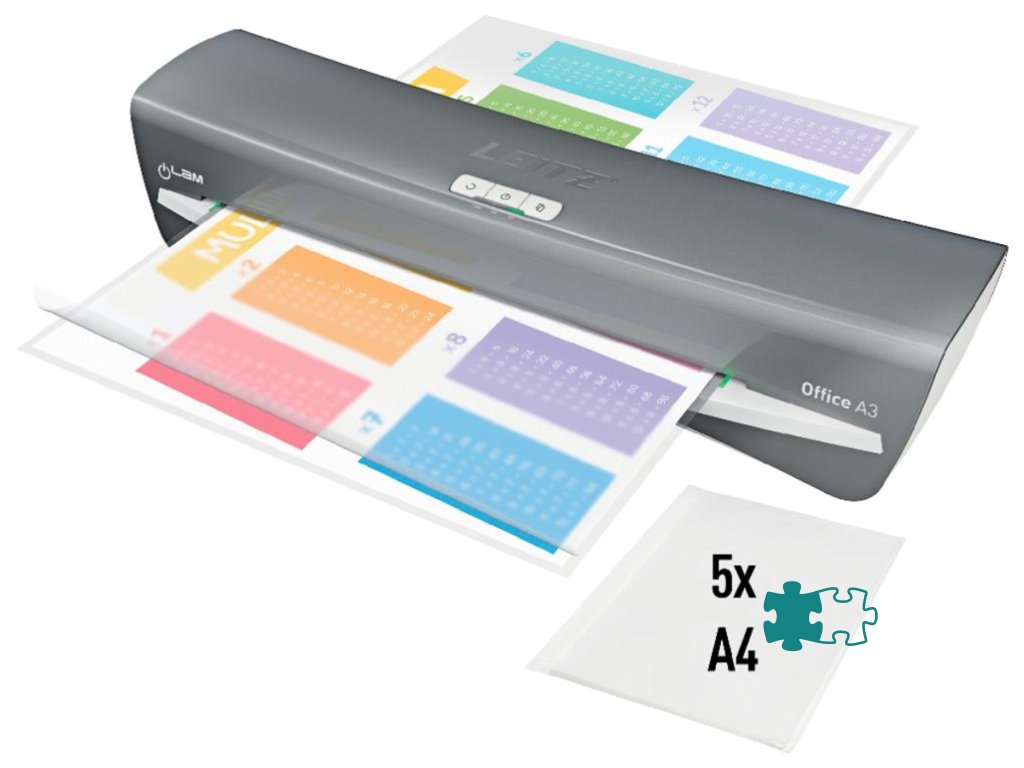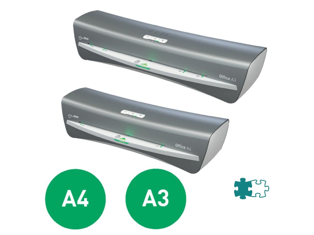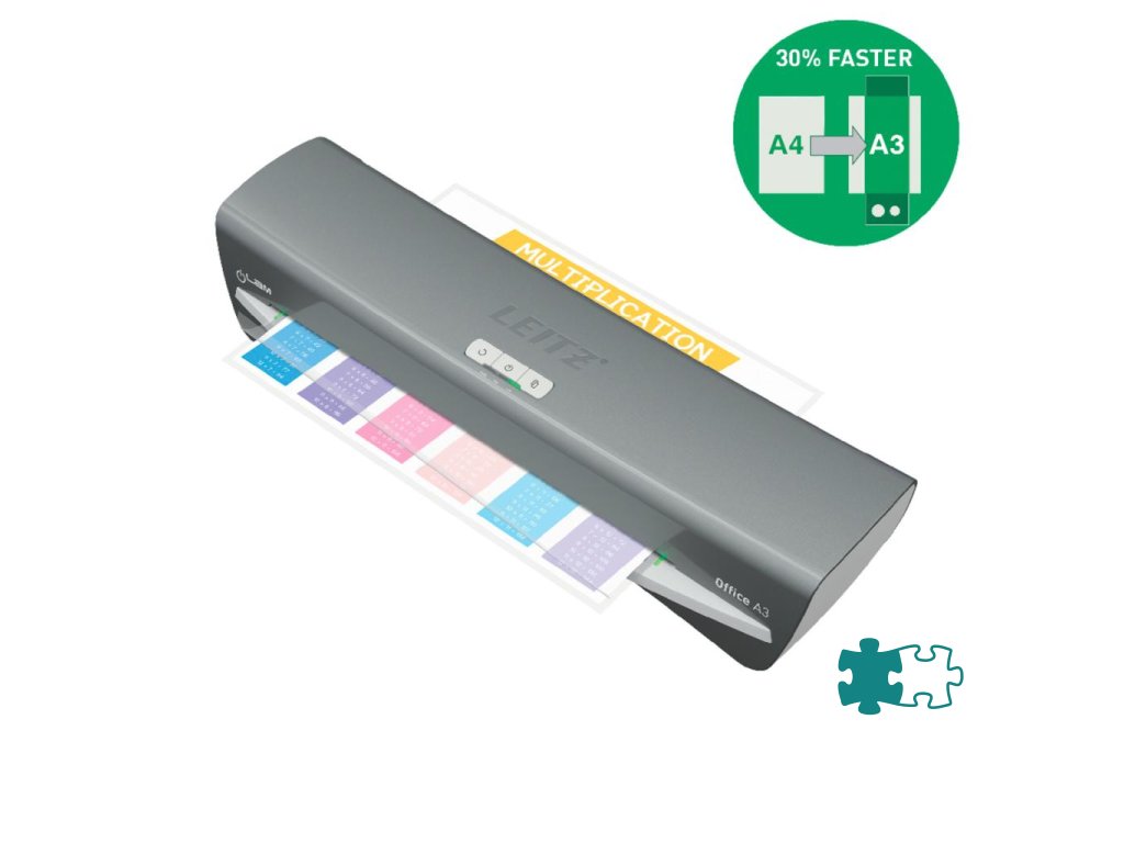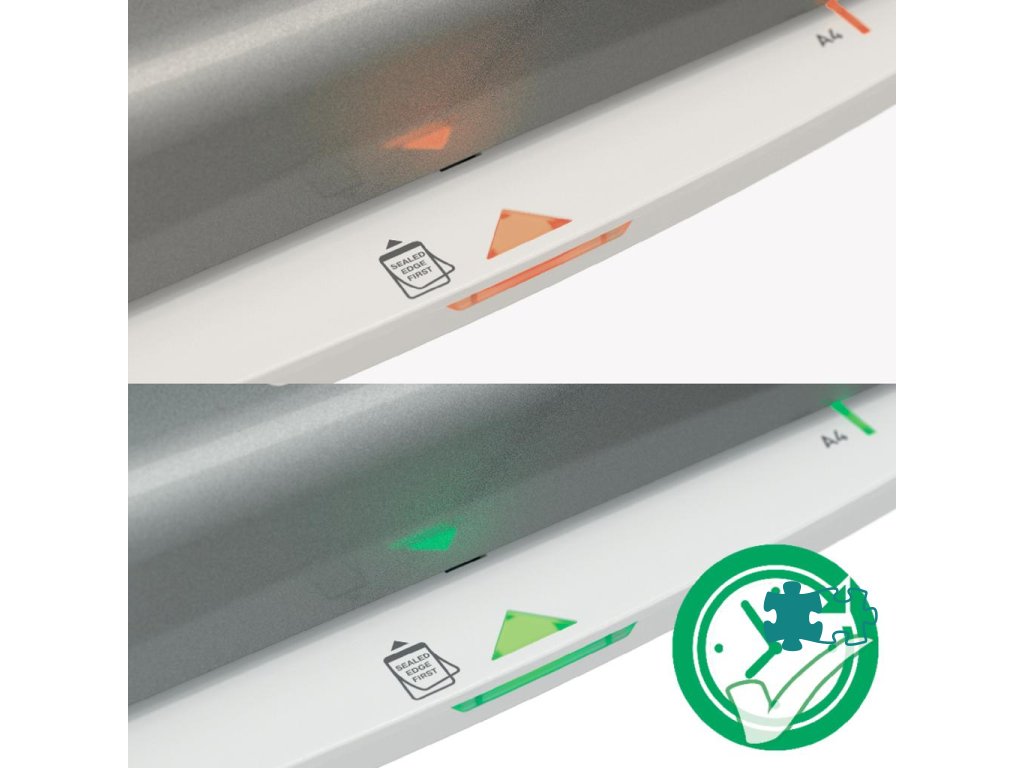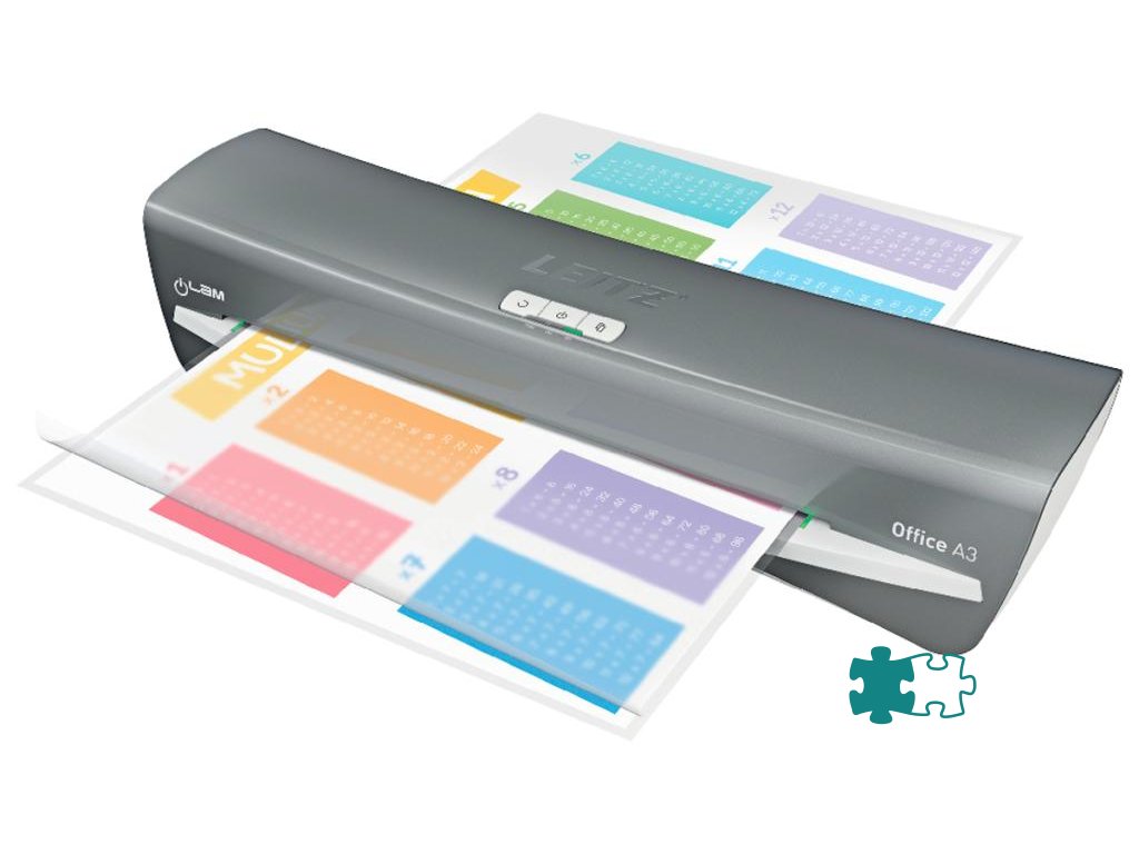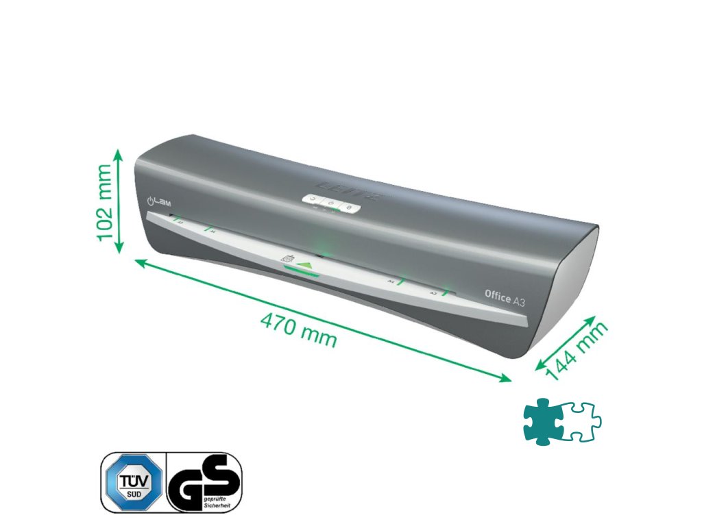 Moderný a kompaktný laminovací prístroj Leitz iLAM Office spája štýl a efektivitu. Tento laminátor vo formáte A3 garantuje ľahké laminovanie, vyznačuje sa rýchlym intervalom zahrievania len za 1 minútu, dokument A4 v 80-mikrónovej kapse na laminovanie zalaminuje už za obyčajných 36 sekúnd. Pomocou intuitívneho dotykového panelu si môžete vybrať jedno z troch nastavení hrúbky vrecka, prípadne využiť tlačidlo spätného chodu pre ľahké vybratie zaseknutej laminovacej kapsy. Inovatívna stavová SMART LED dióda využíva svetelné a zvukové signály: červená dióda znamená zahrievanie, zelená so zvukovým upozornením oznamuje pripravenosť na laminovanie, blikajúca červená dióda znamená automatické vypnutie po 15 minútach nečinnosti. Navyše šikovné vstupné navádzacie LED diódy zabezpečujú dokonalé vyrovnanie vrecka tak, aby sa zabránilo jeho zaseknutiu. Určené na kapsy od 75 do 125 mikrónov. TUV/GS, CE certifikácia. Šedá a biela farba.
