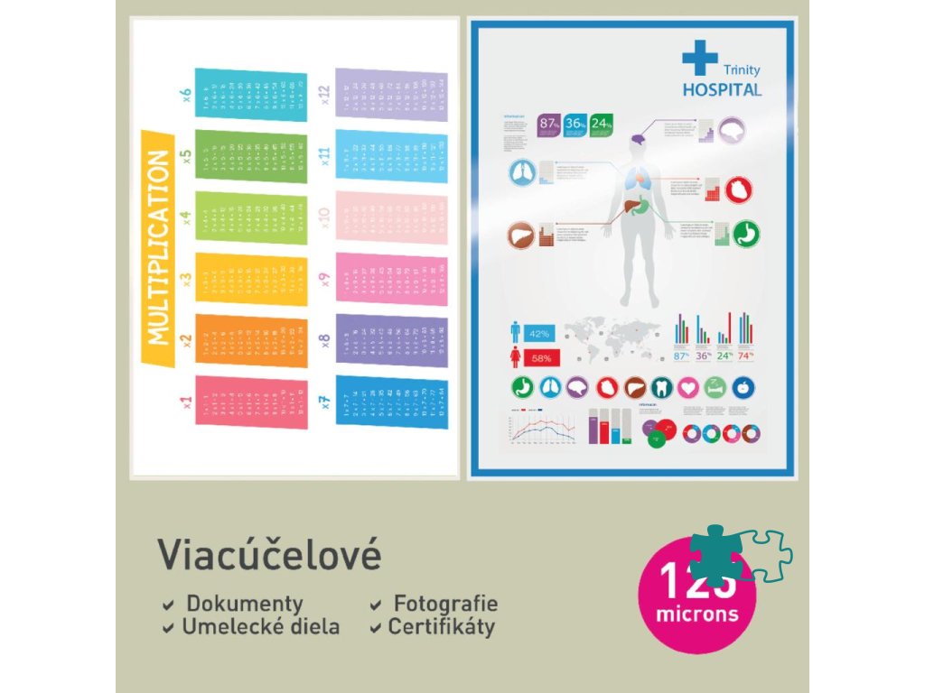 - Dlhodobá ochrana dokumentu pred nečistotou, tekutinou a vlhkosťou. Štandardná tuhosť laminácie.