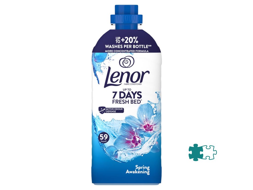 Aviváž Lenor Spring Awakening sa postará o sviežosť posteľnej bielizne až na 7 dní (zreteľná sviežosť Lenor až 1 týždeň). Jej technológia aktívnej ochrany proti zápachu chráni látky pred nepríjemnými pachmi počas nosenia. Na dosiahnutie dlhotrvajúcej sviežosti používajte ako doplnok k praciemu prostriedku zmäkčovač látok Lenor.Dodatočné parametre