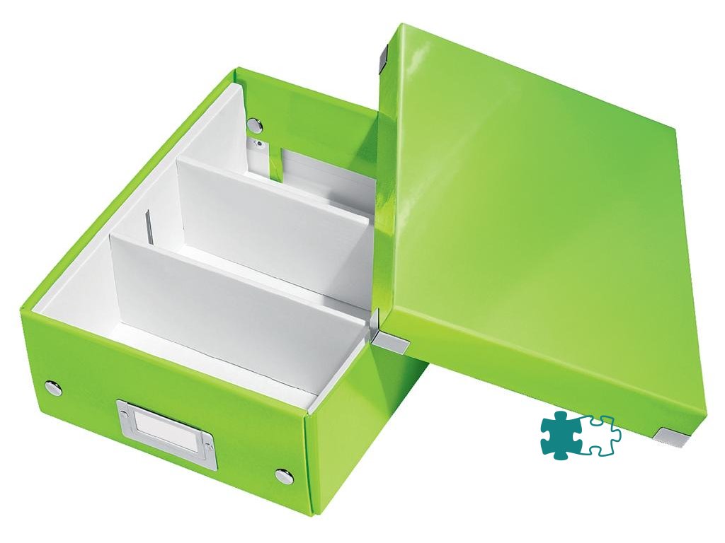 Malá štýlová skladacia krabica s vekom a s rámčekom na štítok. Na usporiadanie nabíjačiek, káblov a ďalšieho vybavenia kancelárie. Veľkosť S. Na prvý pohľad vidíte, čo sa vojde dovnútra! Výška krabice bola navrhnutá tak, aby vám poskytla dostatok priestoru na uloženie príslušenstva a zároveň zabránila skladaniu vecí na seba. Na vylepšenie usporiadania obsahu krabice použite priložený vnútorný systém priehradiek. Môžete rozdeliť krabicu na 2 alebo 3 časti a zabrániť tak miešaniu káblov alebo fotiek. Inteligentná skladacia konštrukcia: rýchle a jednoduché zloženie bez nutnosti použitia skrutiek a možnosť opätovného rozloženia na úsporu miesta, keď krabicu práve nepotrebujete. Moderný vzhľad a farby na skrášlenie vašej kancelárie alebo domova. Lesklé vyhotovenie vytvára prvotriedny vzhľad krabice a umožňuje dlhodobé používanie a jednoduché utieranie prachu. Rámček na štítok pre jednoduché označenie obsahu. Materiál pevný kartón potiahnutý polaminovaným papierom. Farba zelená.Dodatočné parametre