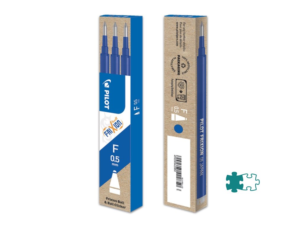 Náplň s prepisovateľným atramentom do rollerov Pilot FriXion Clickera FriXion Ball. V balení 3 ks. Gulička 0,5 mm.Farba modrá.