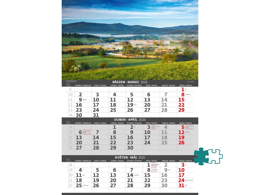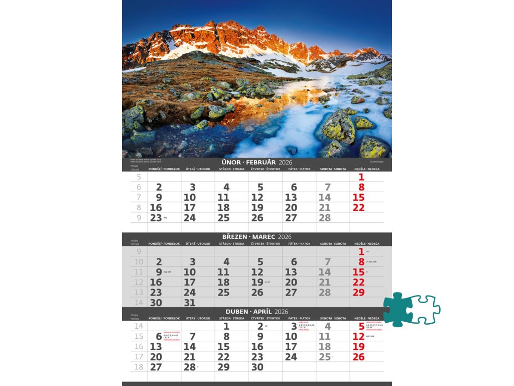 Nástenný kalendár 3-mesačný Hory 31,5 x 45 cm 2026
