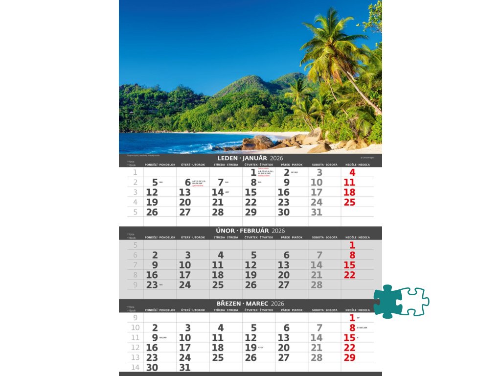 Nástenný kalendár 3-mesačný Pobrežie 31,5 x 45 cm 2026