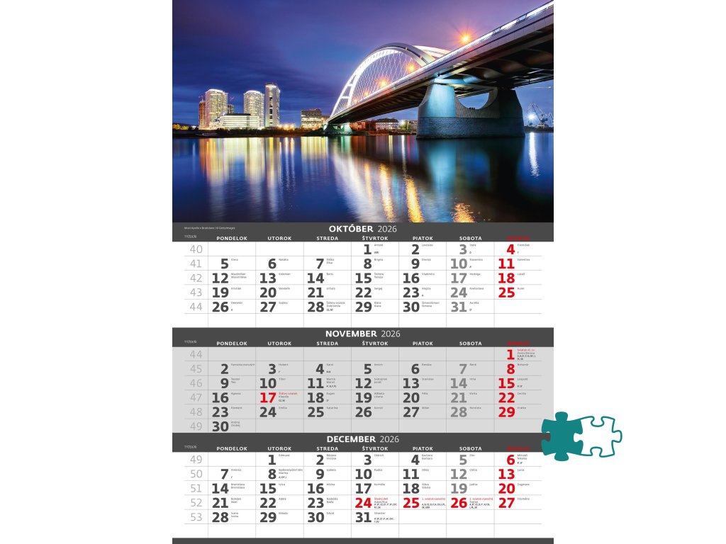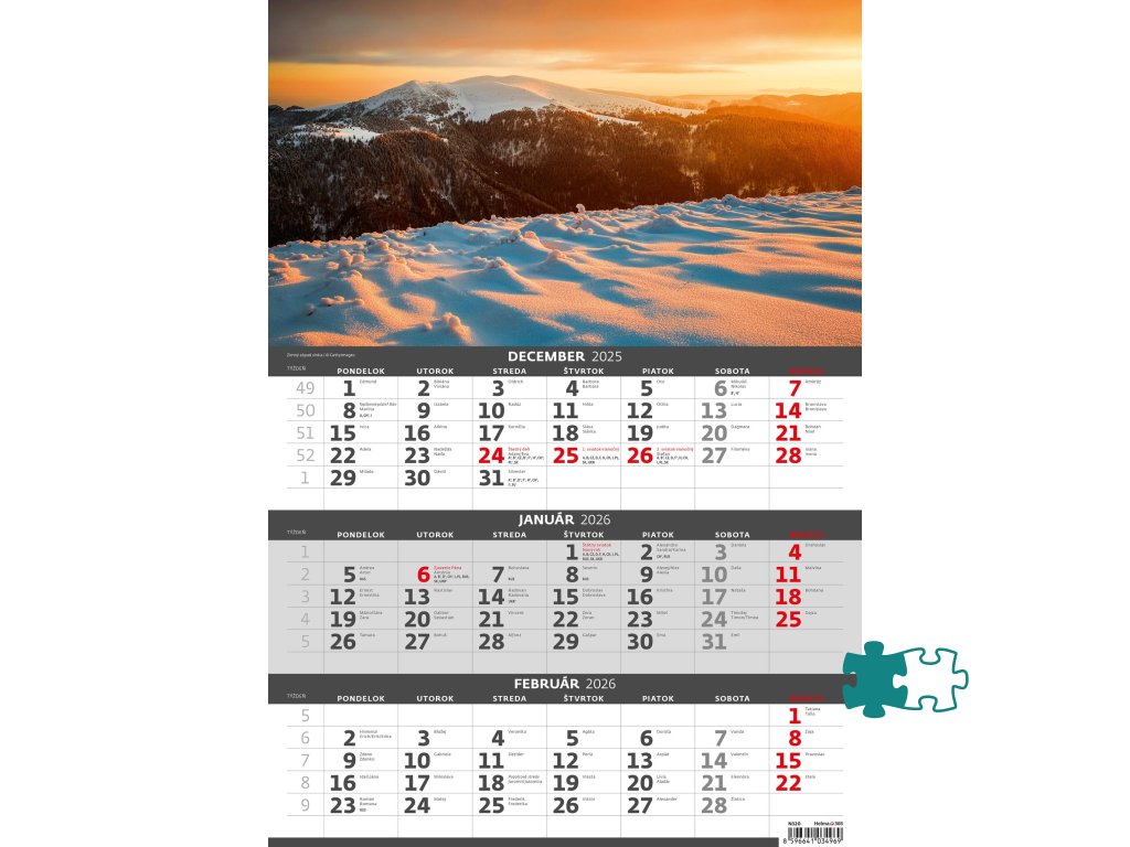 Nástenný kalendár 3-mesačný Slovensko 31,5 x 45 cm 2026