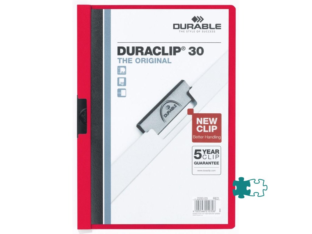Obal vyvinutý spoločnosťou DURABLE pre viazanie nedierovaných listov. Materiál z PVC s unikátnym kovovým klipom, ktorý sa prispôsobí vloženému počtu listov a priehľadnou prednou stranou. Ideálny na prezentácie, ponuky, správy, poznámky na konferencie, semináre a pod. Formát A4. Kapacita 1-30 listov. Väčšie balenie 25 ks.Kapacita: 1-30 listov