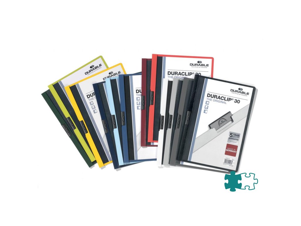 Obal vyvinutý spoločnosťou DURABLE pre viazanie nedierovaných listov. Materiál z PVC s unikátnym kovovým klipom, ktorý sa prispôsobí vloženému počtu listov a priehľadnou prednou stranou. Ideálny na prezentácie, ponuky, správy, poznámky na konferencie, semináre a pod. Formát A4. Kapacita 1-30 listov. Väčšie balenie 25 ks.Kapacita: 1-30 listov