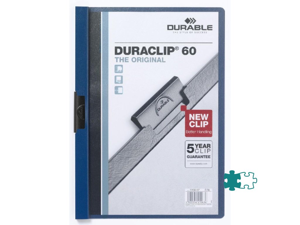Obal vyvinutý spoločnosťou DURABLE pre viazanie nedierovaných listov. Materiál z PVC s unikátnym kovovým klipom, ktorý sa prispôsobí vloženému počtu listov a priehľadnou prednou stranou. Ideálny na prezentácie, ponuky, správy, poznámky na konferencie, semináre a pod. Formát A4. Kapacita 1-60 listov. Väčšie balenie 25 ks.Kapacita: 1-60 listov