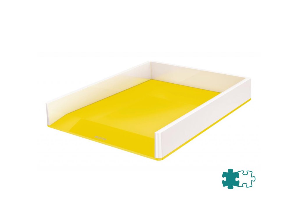 Stohovateľný kancelársky odkladač na dokumenty, časopisy a zložky v dvojfarebnom prevedení v metalických farbách WOW s lesklým povrchom. Farba žltá.Dodatočné parametre