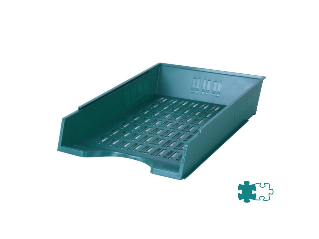 Plastový odkladač na papiere formátu A4 s možnosťou stohovania dozadu. Úprava nepriehľadná. Väčšie balenie 10 ks.Farba: zelená