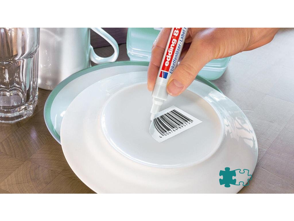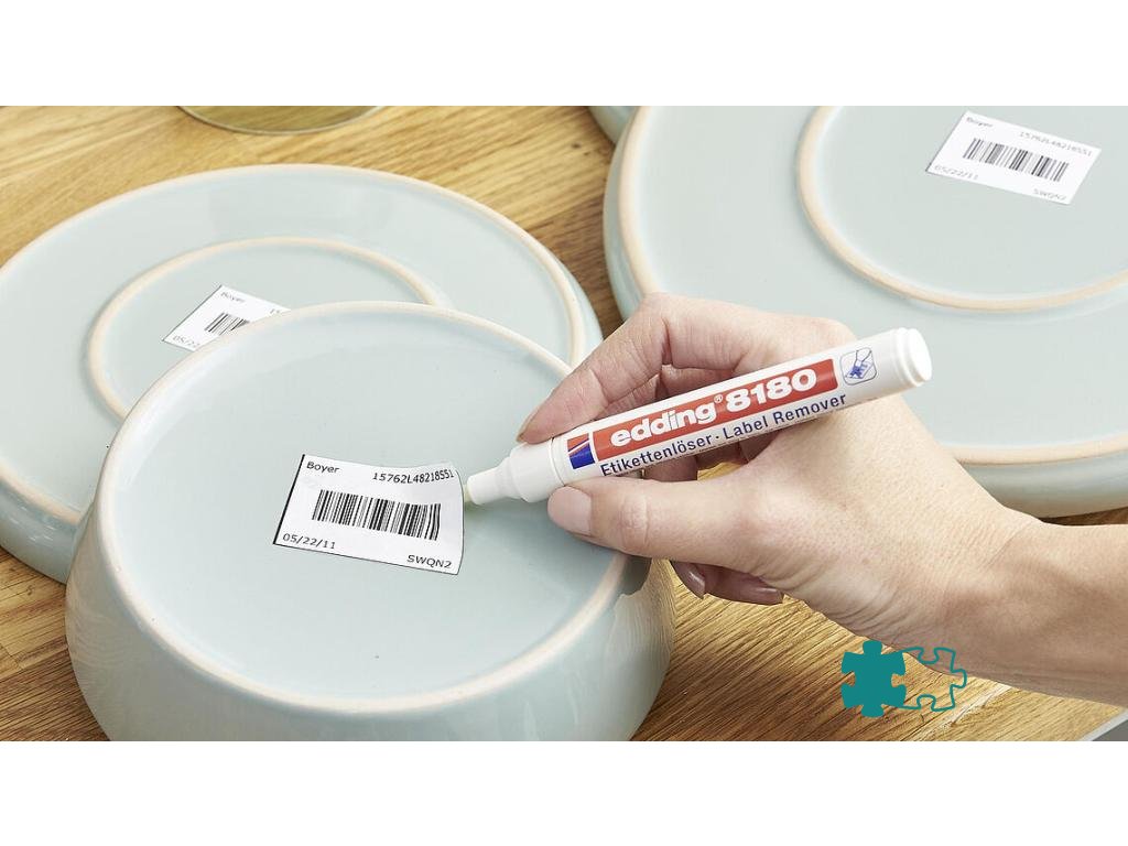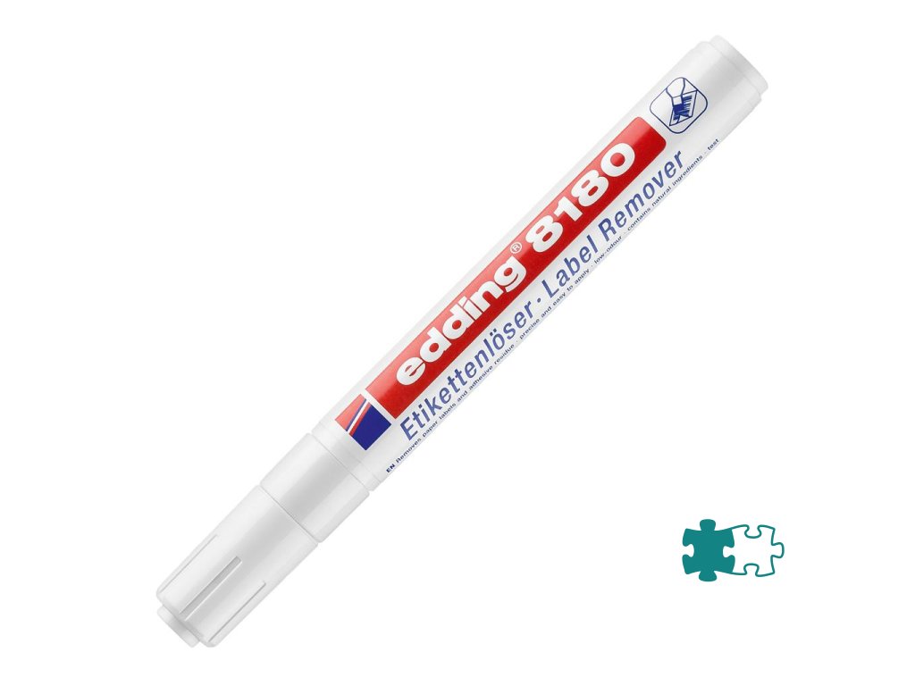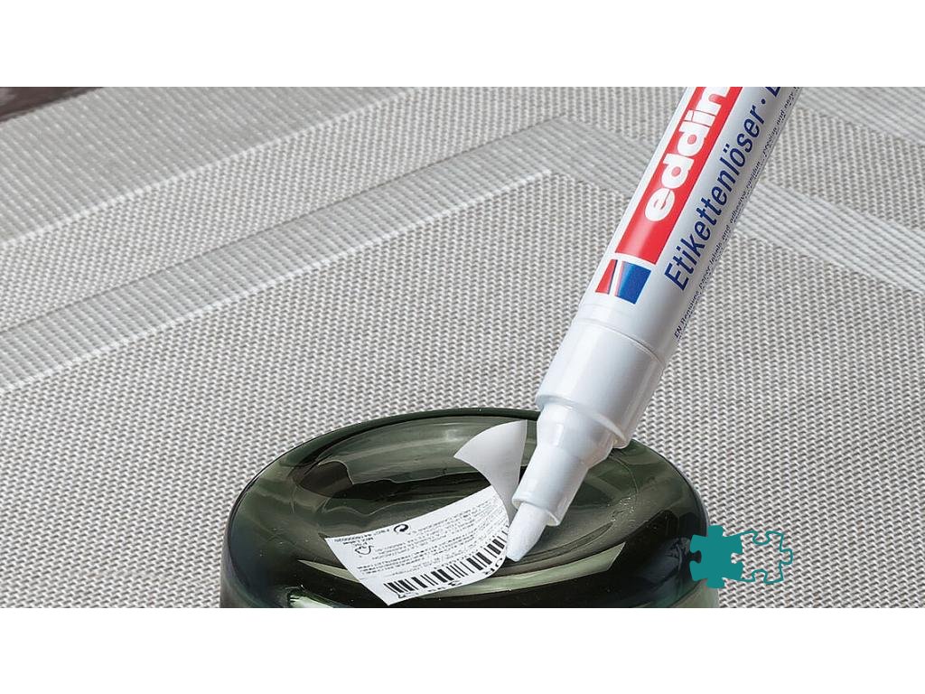 Popisovač slúži k jednoduchému odstráneniu väčšiny papierových štítkov, etikiet a zvyškov lepidla napr. od diaľničných známok, na podrážkach topánok, na skle a porceláne možno použiť aj na vertikálnych plochách - nekvapká. Obsahuje bezfarebný olej s prírodnými zložkami a slabým zápachom. Pred prvým použitím je nutné hrotom zapumpovať a chvíľu počkať, než do hrotu natečie atrament Šírka stopy: 4,0 mm. Zrezaný hrot.Dodatočné parametre