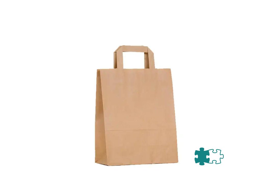 Tašky s plochým uchom sú vyrobené z kvalitného hnedého alebo bieleho kraftového papiera. Gramáž papiera: 70g/m2.Dodatočné parametre