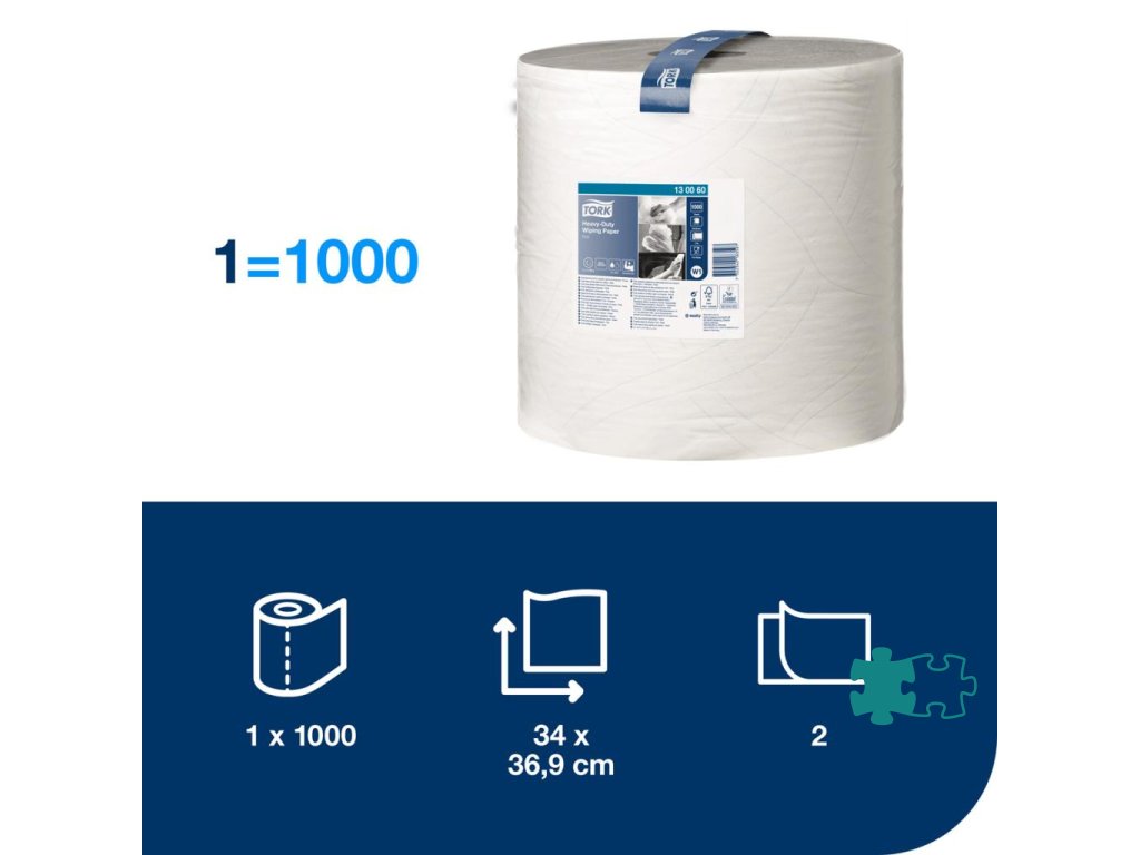 2-vrstvová viacúčelová papierová utierka Tork Heavy-Duty je ideálna na utieranie tekutín a ručné utieranie. Túto papierovú utierku možno použiť v Tork nadstavcových zásobníkoch na podlahu či na stenu, ktoré sú vyvinuté pre bezpečnosť, účinnosť a spoľahlivosť s jednoduchým napĺňaním a odtŕhaním a možnosťou vybrať požadovanú papierovú utierku jednou rukou.Farba: biela