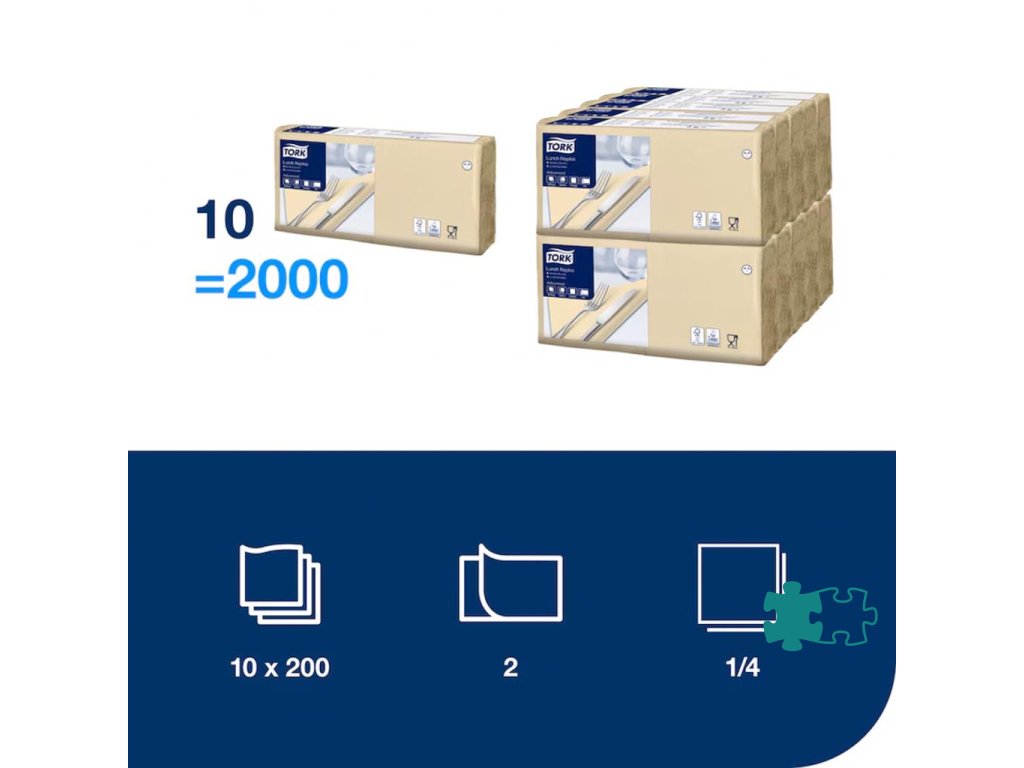 Tork servítky na obed sú ideálne pre zariadenia, kde sa servírujú ľahké jedlá alebo ľahké občerstvenie. Môžete si vybrať z palety moderných aj tradičných farieb, ktoré budú ladiť s interiérom vašej reštaurácie.- Zaujmite hostí vlastnou potlačou - 75 % používateľov servítok si prečíta reklamný odkaz