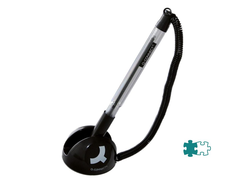 Plastové pero moderného dizajnu na stojane s prilepovacou základňou azabudovaným magnetom umožňujúcim montáž na kovové povrchy. S možnosťou nastavenia uhla sklonu, spojené s retiazkou. Vhodné pre verejné miesta, ako sú pošty, recepcie, kancelárie, sekretariáty a pod. Farba stopy čierna. Bez možnosti dokúpenia náhradnej tuhy. Väčšie balenie 12 ks.Dodatočné parametre