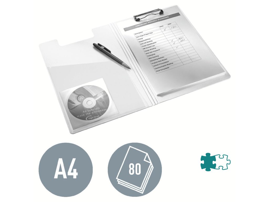 Pevná písacia podložka A4 na každodenné použitie v sviežej farbe WOW s dvojfarebným efektom. Ideálna na zabezpečenie papierov na cestách alebo počas prezentácií a prejavov. Silná kovová spona chráni bezpečne papiere pred vypadnutím. Vrecko na voľné papiere a drobné predmety. Farba červená, kapacita 75 listov A4 (80 g/m2).Dodatočné parametre
