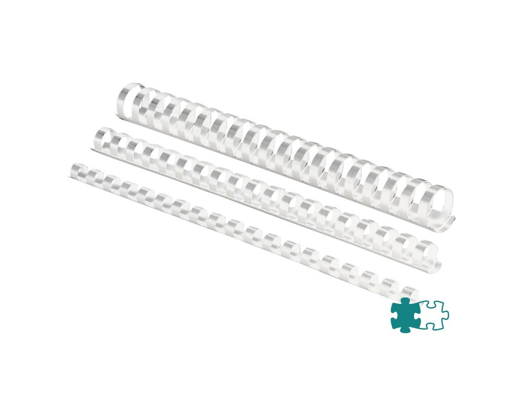 Plastové hrebene s 21 krúžkami, formát A4.Farba: biela