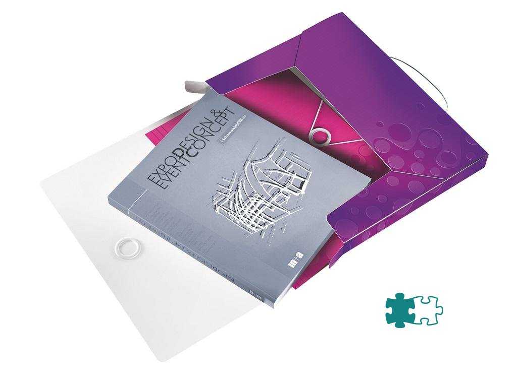 Nepriehľadný polypropylénový box na prenos objemnejších spisov, cenníkov, katalógov a pod. do formátu A4. V dizajne rady WOW v žiarivých farbách. Praktické zatváranie gumičkou na kovový krúžok. Rozmery (v × h × š) 330 × 250 × 37 mm. Väčšie balenie 5 ks. Farba purpurová.Dodatočné parametre