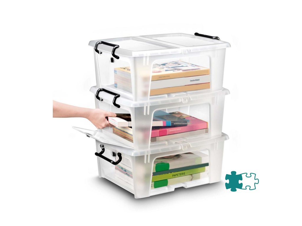 Transparentný robustný multifunkčný box z plastu s vekom, stohovateľný pri nepoužívaní. Motýlie veko na otváranie z 2 strán z dôvodu ľahšieho prístupu, 2 pevné rukoväte slúžiace na prenos boxu a súčasne ako klip na pevné uzatvorenie boxu, otváranie boxu spredu. Materiál recyklovaný PP. Objem 20 litrov, romery 46 × 36 × 19 cm. Na tento produkt platí predĺžená záruka 5 rokov.Dodatočné parametre