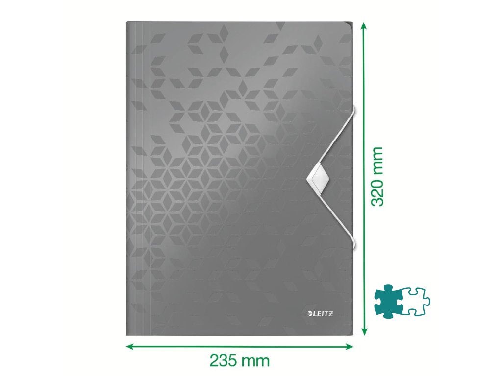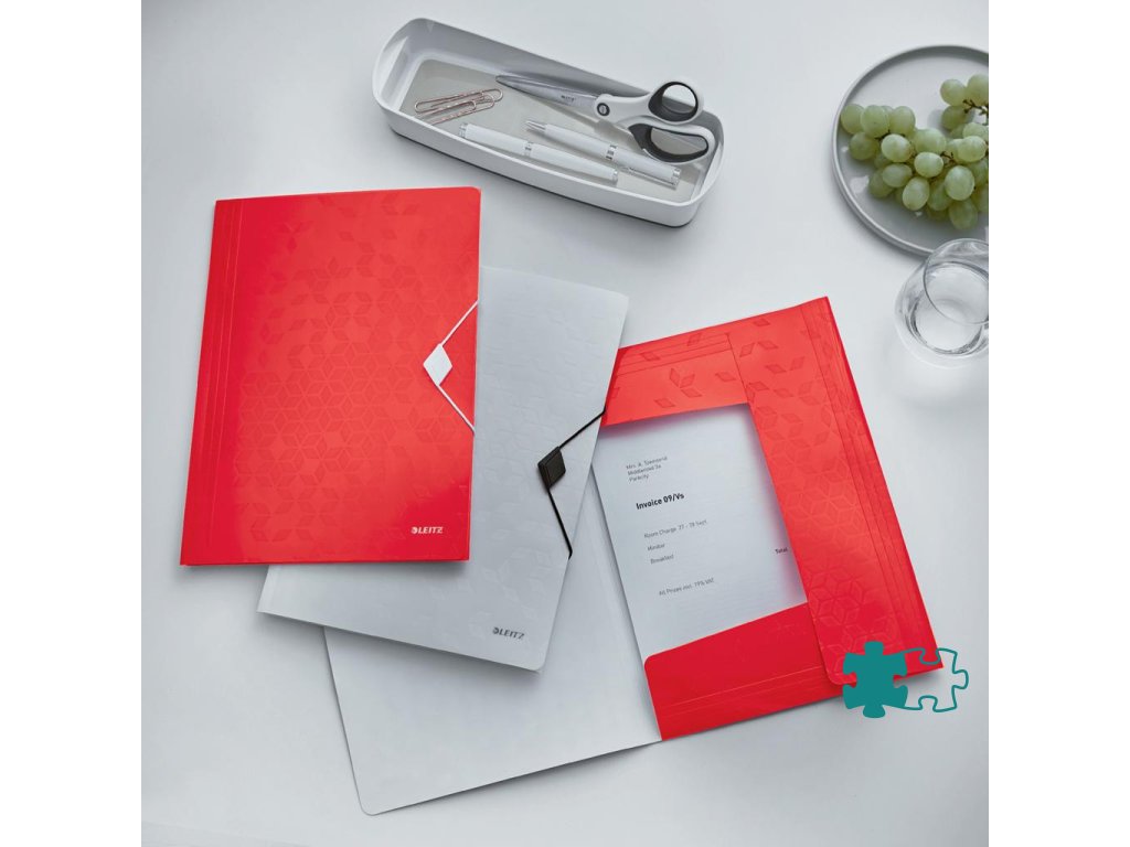 Trojchlopňový obal na dokumenty do formátu A4 z polypropylénu s dlhou životnosťou. V dizajne rady WOW v žiarivej farbe. Uzatváranie uchytením na gumičku. Kapacita 150 listov. Väčšie balenie 10 ks. Farba červená.Dodatočné parametre