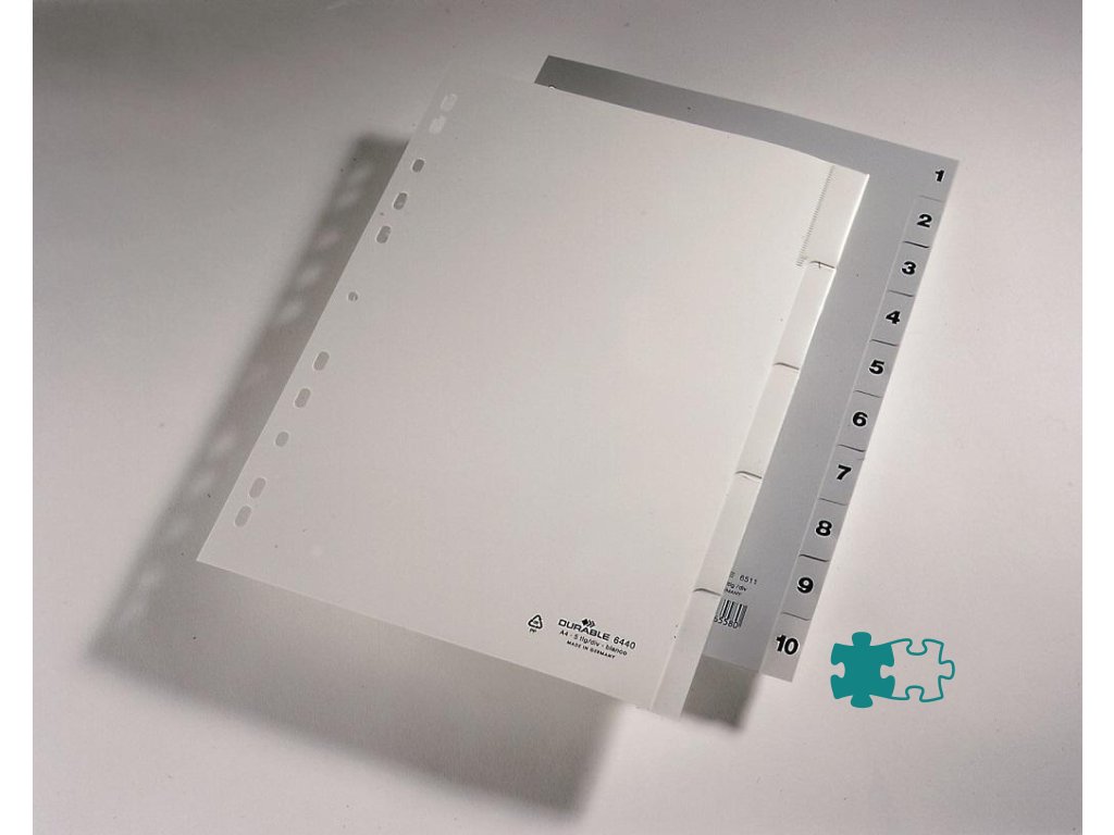 Číselný rozraďovač z polypropylénu. Formát A4, euro-dierovanie. Balenie jedna sada v polyesterovom sáčku. Väčšie balenie 25 sád. Farba sivá.Farba: sivá
