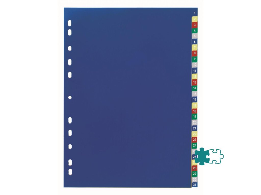Farebný číselný rozraďovač vyrobený zo zosilneného plastu s eurodierovaním, popisovateľný papierový titulný list na ľahkú orientáciu v dokumentoch. Výsledný dokument pôsobí upravene a reprezentatívne. Väčšie balenie 20 sád.Formát: A4