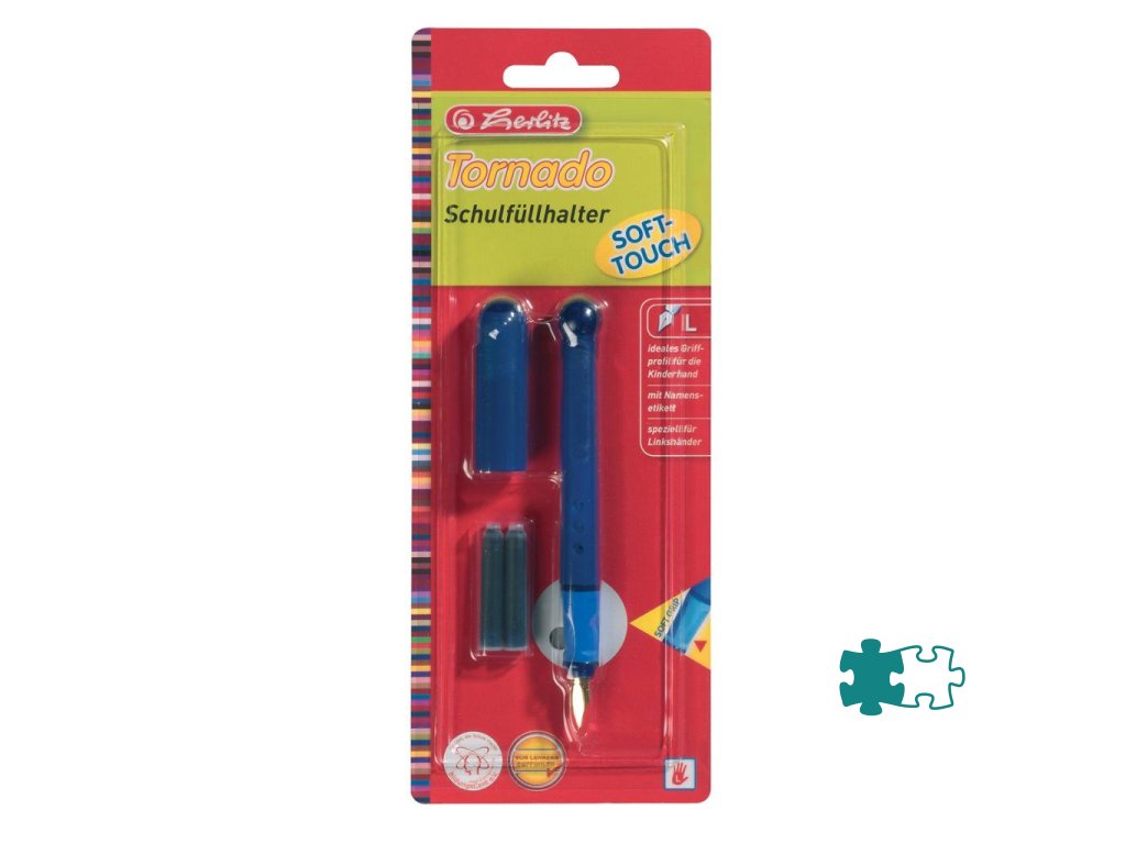 Plniace bombičkové pero L - Tornado - pre ľavákov, hrot z ušľachtilej ocele, ergonomické pogumované držanie, nálepka s menom, balenie v blistri, mix farieb.Dodatočné parametre