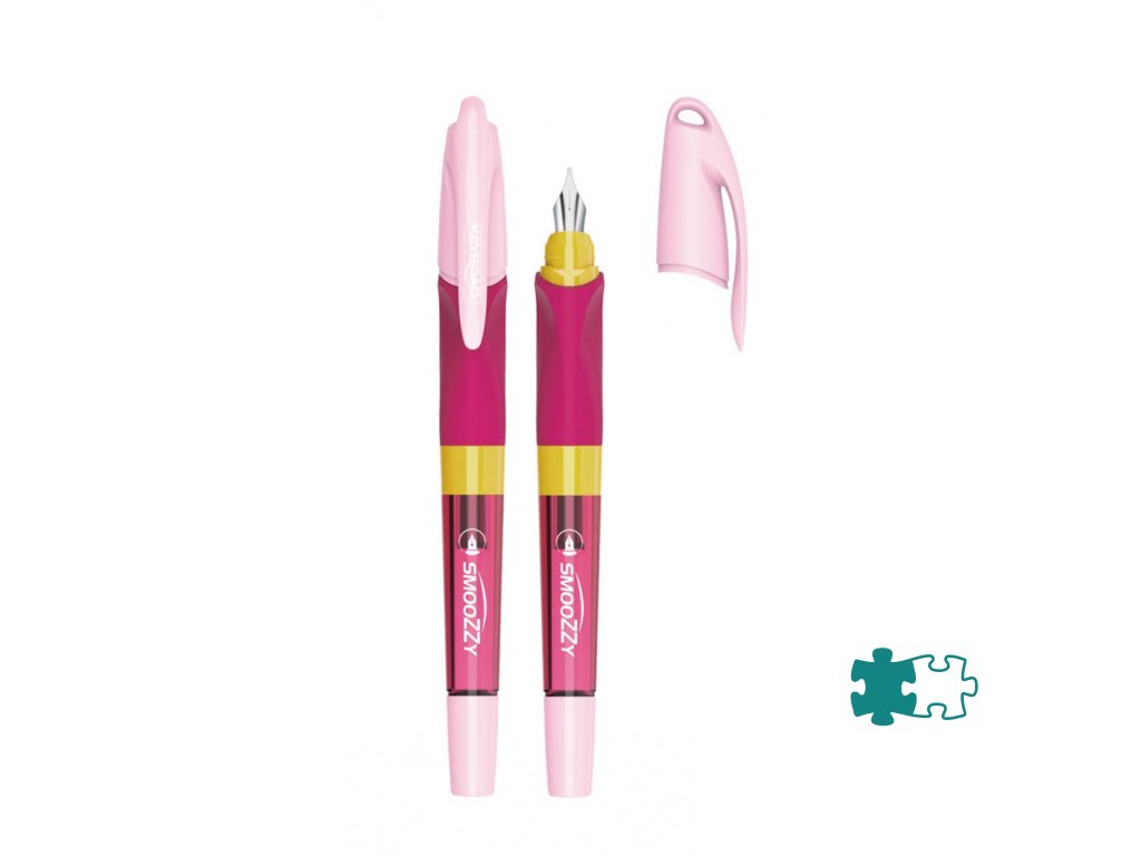 Písacie plniace pero KEYROAD Smozzy, ideálne na učenie písania v škole aj doma. Má ergonomický, pogumovaný profil rukoväte, vhodné pre pravákov aj ľavákov. Vysoko kvalitný hrot z nehrdzavejúcej ocele hrúbka čiary písania: 0,7 mm. Umývateľný modrý atrament. Balenie: blister. Farba: mix farieb.Dodatočné parametre