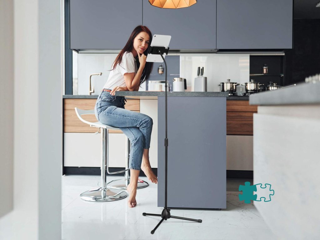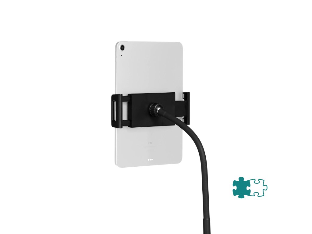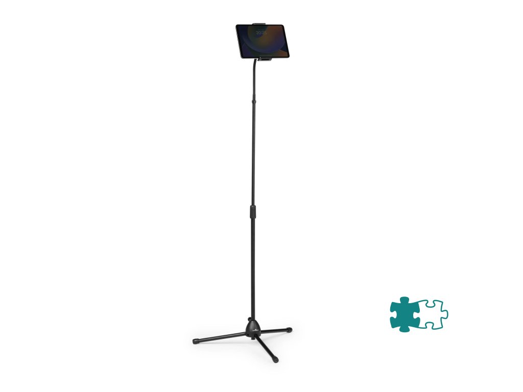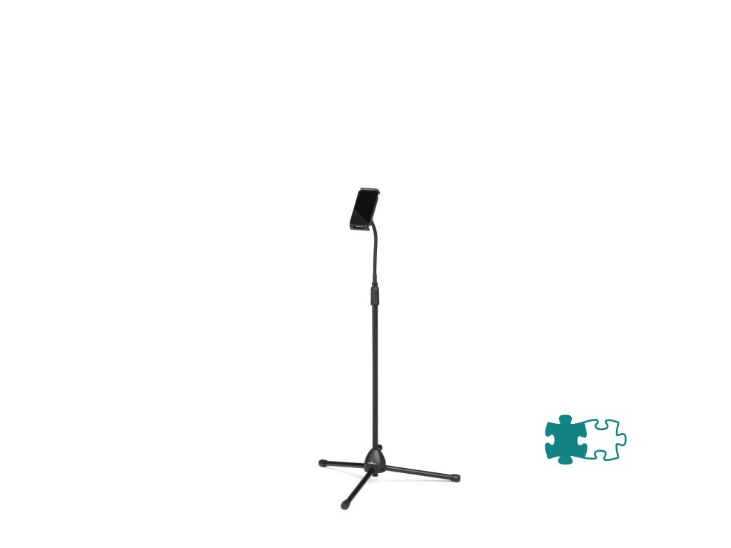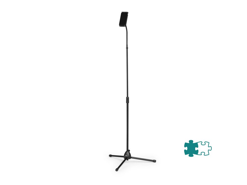Podlahový stojan na tablety a mobilné telefóny od 4,7-13`. Stojan s teleskopickou tyčou a flexibilným ramenom pre plynulé otáčanie a nastavenie výšky.