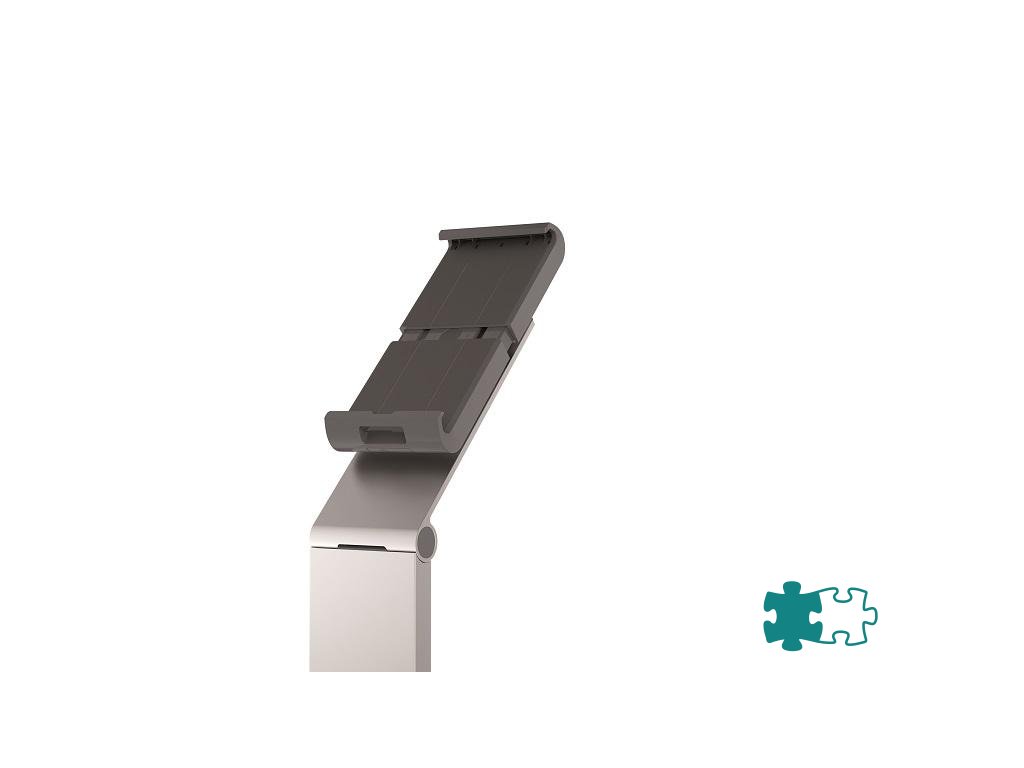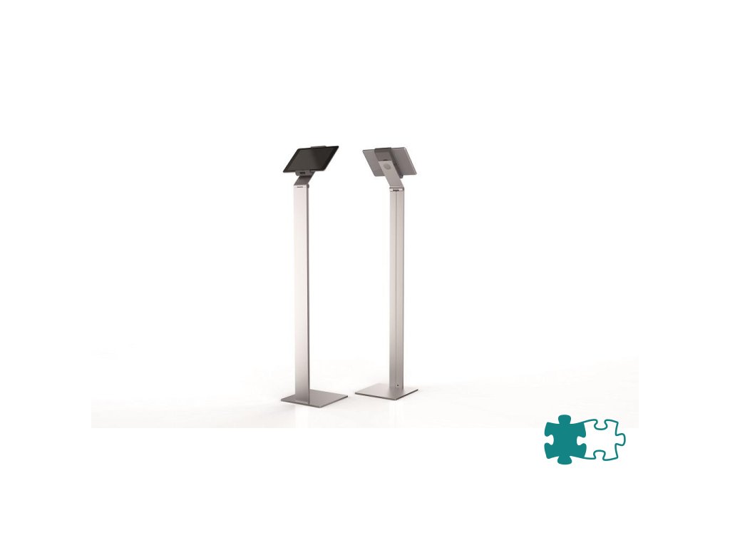Vysoko stabilný hliníkový podlahový stojan na tablety veľkosti 7 - 13`. Flexibilný uhol nastavenia sklonu ramena 0 - 88 stupňov, ochrana proti krádeži pomocou blokovacieho mechanizmu na úchytoch a s bezpečnostným slotom na základni na štandardný káblový zámok, kanál pre kábel s organizérom káblov, nastaviteľnom v celom rozsahu výšky. Dodávaný s USB káblom. Rozmery (š × v × h) 270 × 1215 × 270 mm.Dodatočné parametre