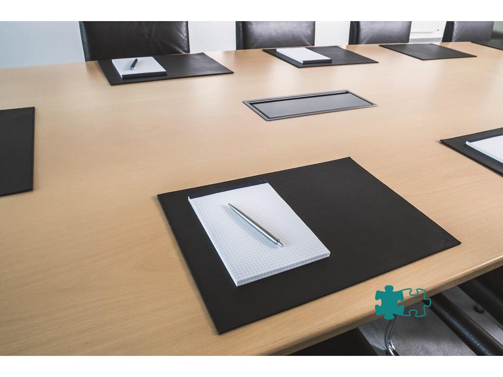 Podložka na stôl vysokej kvality vyrobená z najjemnejšej zrnitej kože. Ručná výroba, prešívaný lem, zadná strana z vysokokvalitného fleesu. Rozmery 42 × 30 cm. Farba čierna.Dodatočné parametre