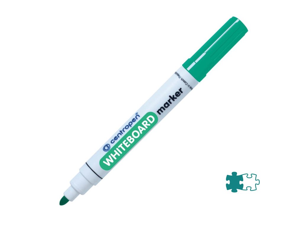 Za sucha stierateľný svetlostály popisovač. Vhodný na biele smaltované tabule, PVC, sklo, porcelán. Okrúhly hrot hrúbky 5 mm. Šírka stopy 2,5 mm. Väčšie balenie 10 ks.Farba: zelená