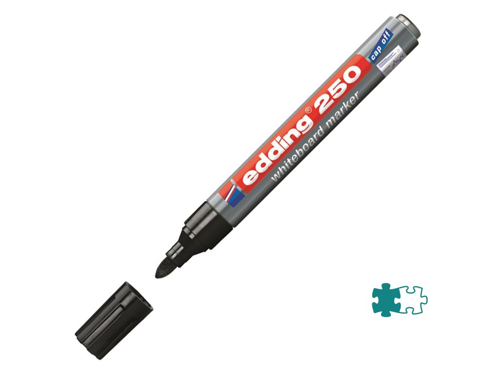 Popisovač na biele tabule, zasucha stierateľný. Plnený pigmentovým atramentom slabého zápachu bez prísady butylacetátu s vlastnosťou `Cap off`, zabraňujúcou vysychaniu atramentu pri otvorenom hrote aj niekoľko dní. Dopĺňateľný atramentom edding BT 30 alebo BTK 25. Hliníkové telo, vymeniteľný hrot. Hrot okrúhly, šírka stopy 1,5 - 3 mm. Dodávaný samostatne. Väčšie balenie 10 ks.Farba: čierna