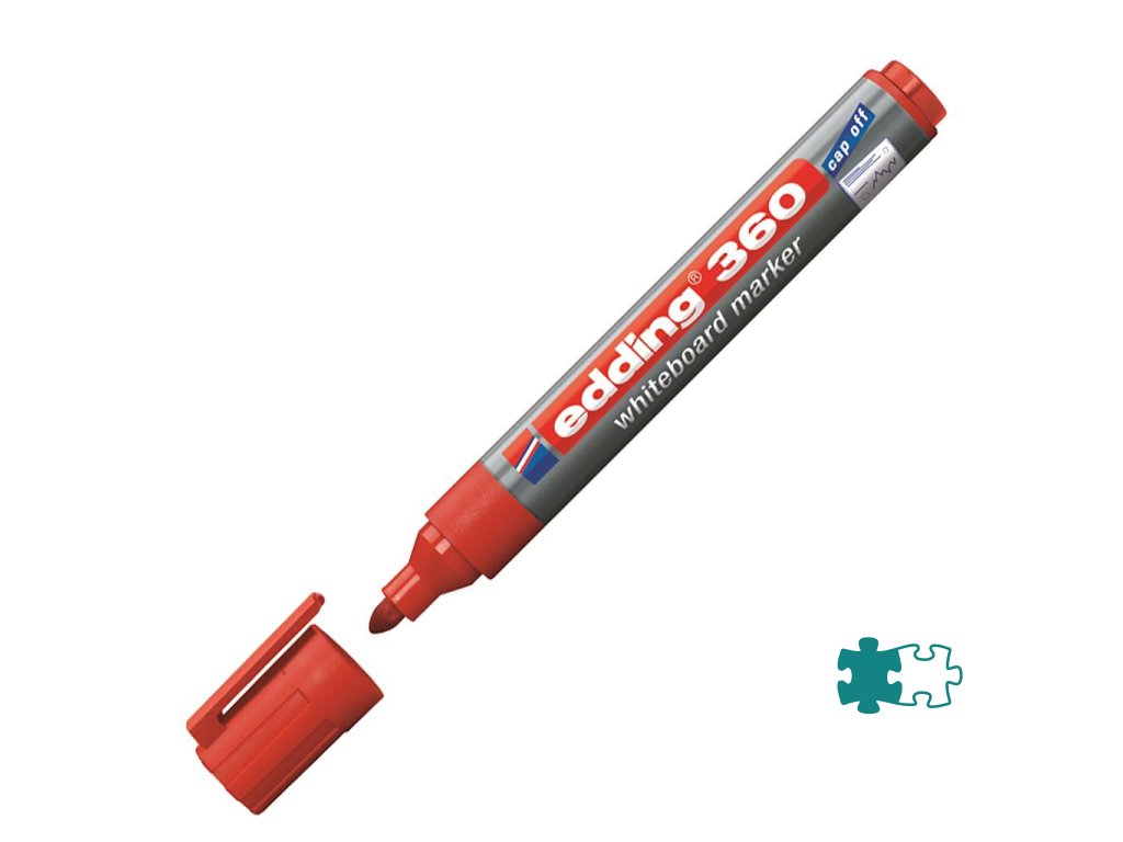 Popisovač vhodný na biele tabule, stierateľný za sucha. Plnený pigmentovým atramentom slabého zápachu bez prísady butylacetátu s vlastnosťou „Cap off“, zabraňujúcou vysychaniu atramentu pri otvorenom hrote aj niekoľko dní. Dopĺňateľný atramentom edding BTK 25. Plastové telo, vymeniteľný hrot. Hrot okrúhly, šírka stopy 1,5---3 mm. Väčšie balenie 10 ks.Farba: červená