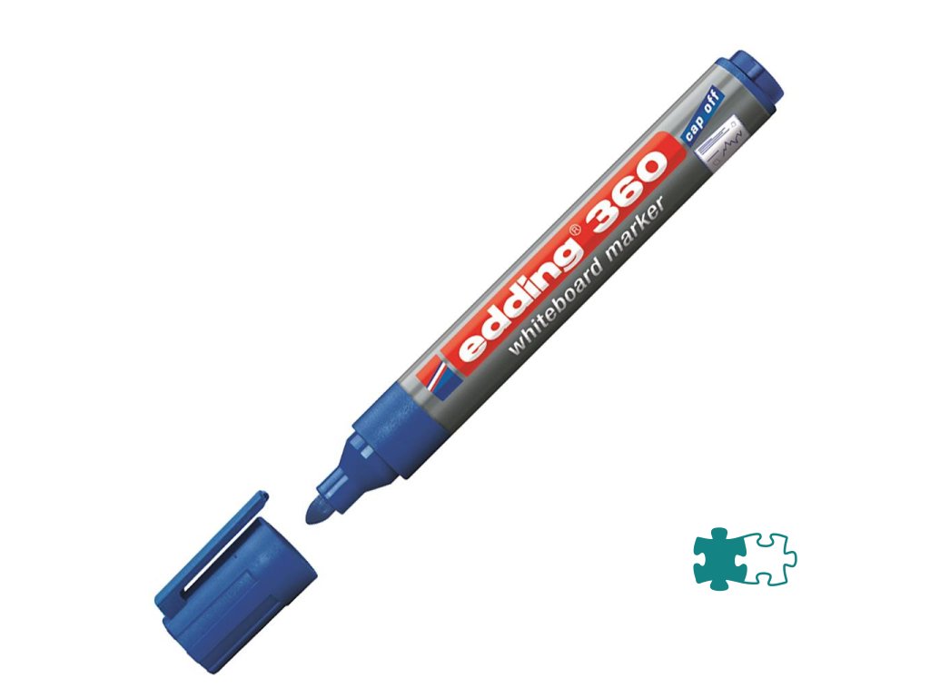 Popisovač vhodný na biele tabule, stierateľný za sucha. Plnený pigmentovým atramentom slabého zápachu bez prísady butylacetátu s vlastnosťou „Cap off“, zabraňujúcou vysychaniu atramentu pri otvorenom hrote aj niekoľko dní. Dopĺňateľný atramentom edding BTK 25. Plastové telo, vymeniteľný hrot. Hrot okrúhly, šírka stopy 1,5---3 mm. Väčšie balenie 10 ks.Farba: modrá