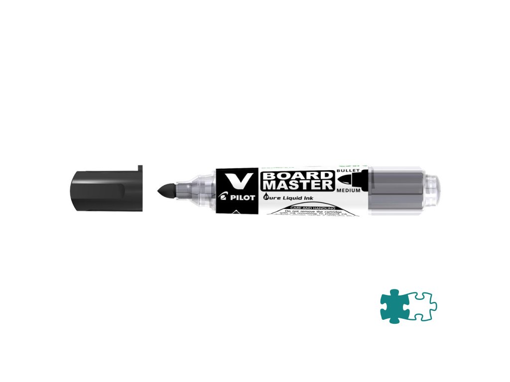 Popisovač na biele tabule s vymeniteľnou náplňou na alkoholovej báze. Priemer hrotu 6 mm, šírka stopy 2,3 mm. Farba čierna.