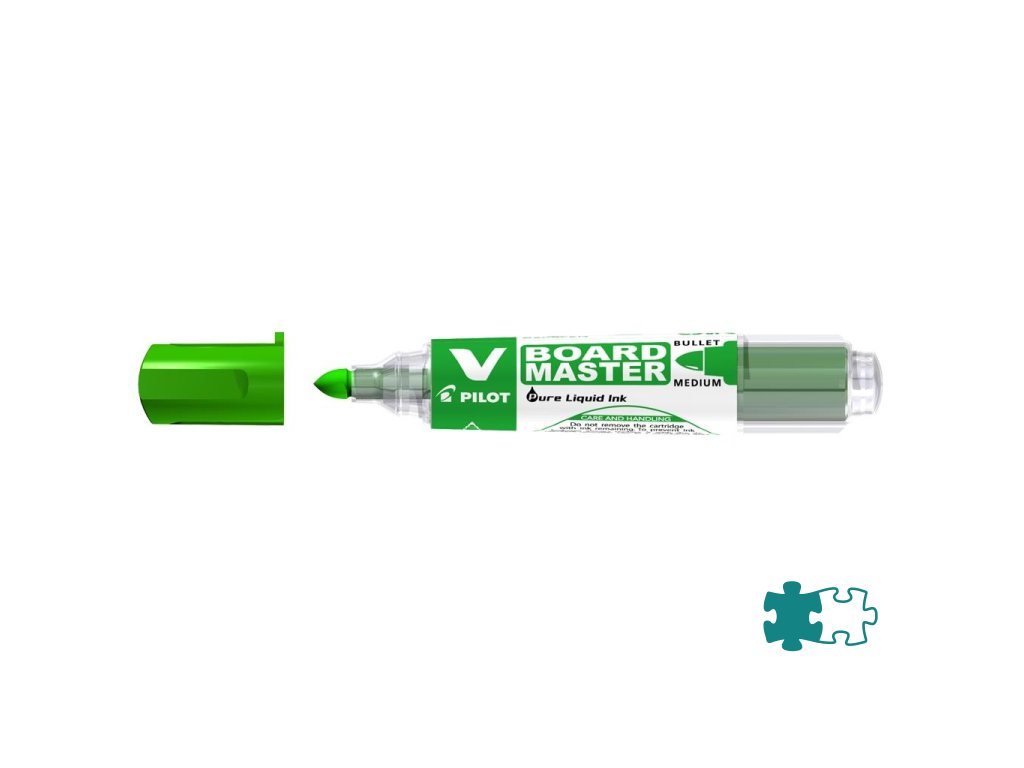 Popisovač na biele tabule s vymeniteľnou náplňou na alkoholovej báze. Priemer hrotu 6 mm, šírka stopy 2,3 mm. Farba zelená.