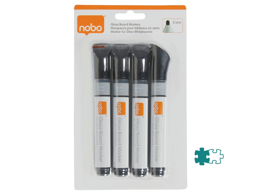 Popisovače Nobo na sklenené tabule s okrúhlym hrotom, balenie 4 ks, čierne