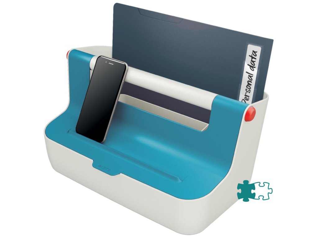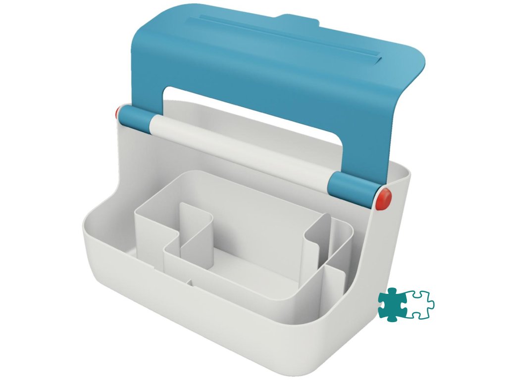 Ľahký a ľahko prenosný úložný box vďaka robustnej rukoväti vystuženej hliníkom. Veko poskytuje uprataný vzhľad a väčšie súkromie, ale dá sa doširoka otvoriť pre ľahký prístup k obsahu. Inteligentné delenie priehradky pre lepšiu organizáciu a rýchly prístup k pomôckam, široká zadná priehradka na uloženie dokumentov veľkosti A4. So zdvihnutímv hornej časti veka na uloženie vášho smartfónu / tabletu, aby ste mali svoje mobilné zariadenia stále na očiach. Vyrobené z odolného ABS materiálu pre každodenné použitie, ľahko utierateľné. Farba modrá.