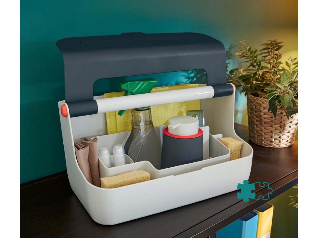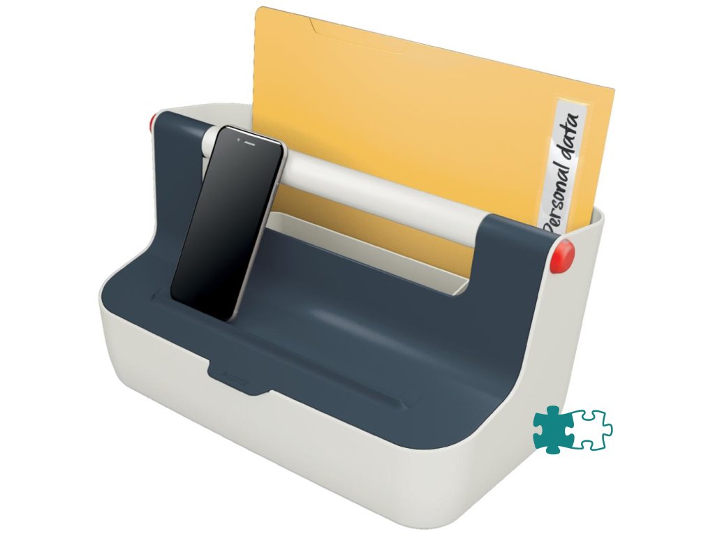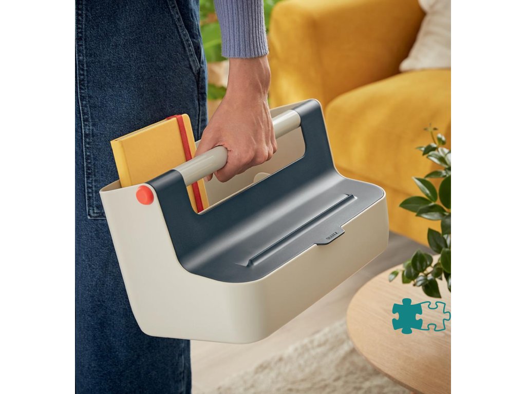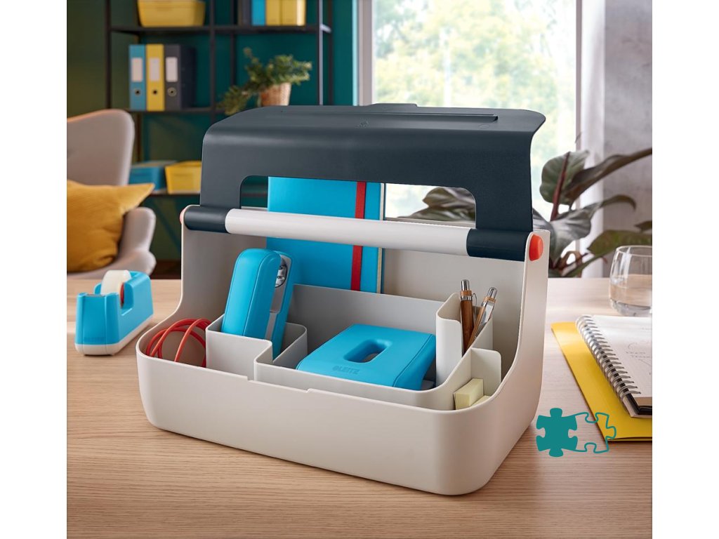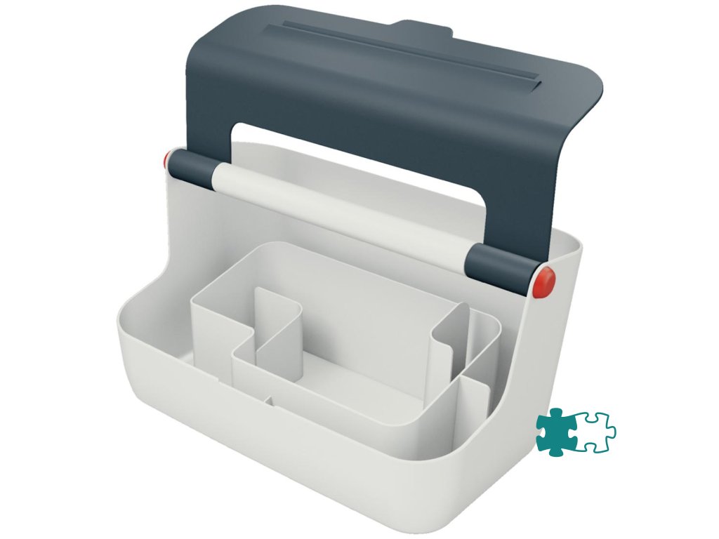 Ľahký a ľahko prenosný úložný box vďaka robustnej rukoväti vystuženej hliníkom. Veko poskytuje uprataný vzhľad a väčšie súkromie, ale dá sa doširoka otvoriť pre ľahký prístup k obsahu. Inteligentné delenie priehradky pre lepšiu organizáciu a rýchly prístup k pomôckam, široká zadná priehradka na uloženie dokumentov veľkosti A4. So zdvihnutímv hornej časti veka na uloženie vášho smartfónu / tabletu, aby ste mali svoje mobilné zariadenia stále na očiach. Vyrobené z odolného ABS materiálu pre každodenné použitie, ľahko utierateľné. Farba sivá.