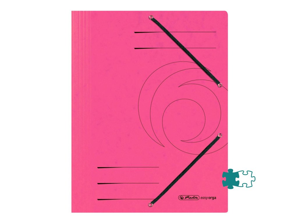 Obal A4 s tromi chlopňami a dvomi gumičkami čiernej farby. Materiál prešpánový kartón gramáže 355 g / m². Väčšie balenie 25 ks. Farba ružová.Dodatočné parametre