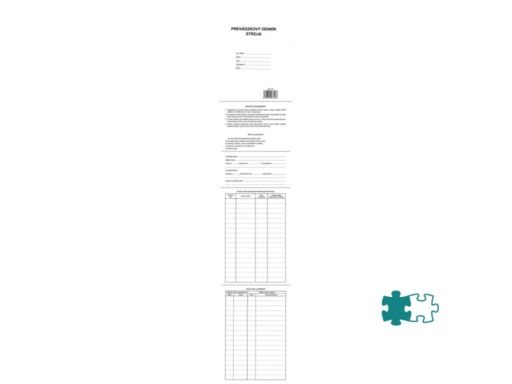 Tlačivo : Prevádzkový denník stroja formát A5, v balení 48 strán.Dodatočné parametre