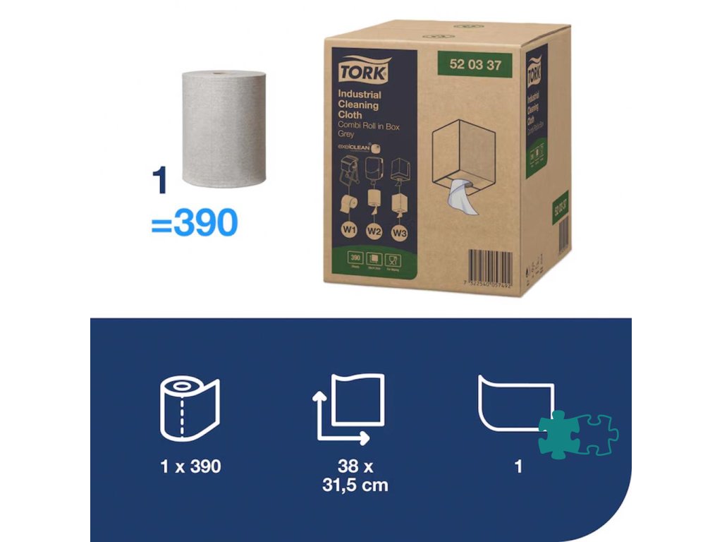 Tork priemyselná čistiaca utierka, kompatibilná s dávkovačmi W2, W3 a W1.Dĺžka kotúča: 148,2 m