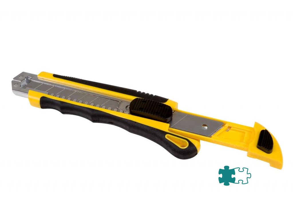 Profesionálny rezač s puzdrom z ušľachtilej ocele, gumenou zónou pre dokonalé uchytenie a otvorom na zavesenie. Po vytiahnutí opotrebovaného noža sa zasunutím bežca nainštaluje z integrovaného zásobníka automaticky nôž nový.Šírka čepele: 18 mm.