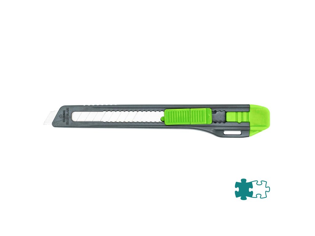 Plastový rezač, šírka čepele 9 mm. Farba čierna/ zelená. Úprava plastová. Balenie 20 kusov.Dodatočné parametre