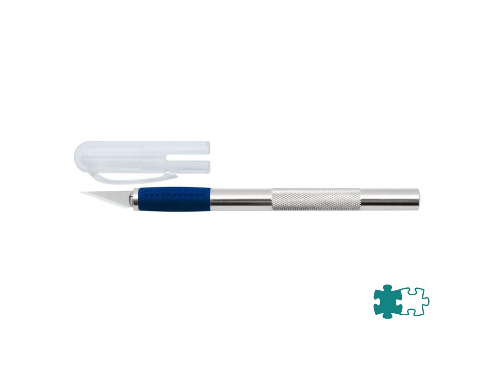 Skalpel na ostré a precízne rezanie papiera, kartónu a fólií. Dĺžka 15 cm. Súčasťou balenia 3 čepele. Náhradné čepele obj. kód WE007821.Dĺžka: 15 cm