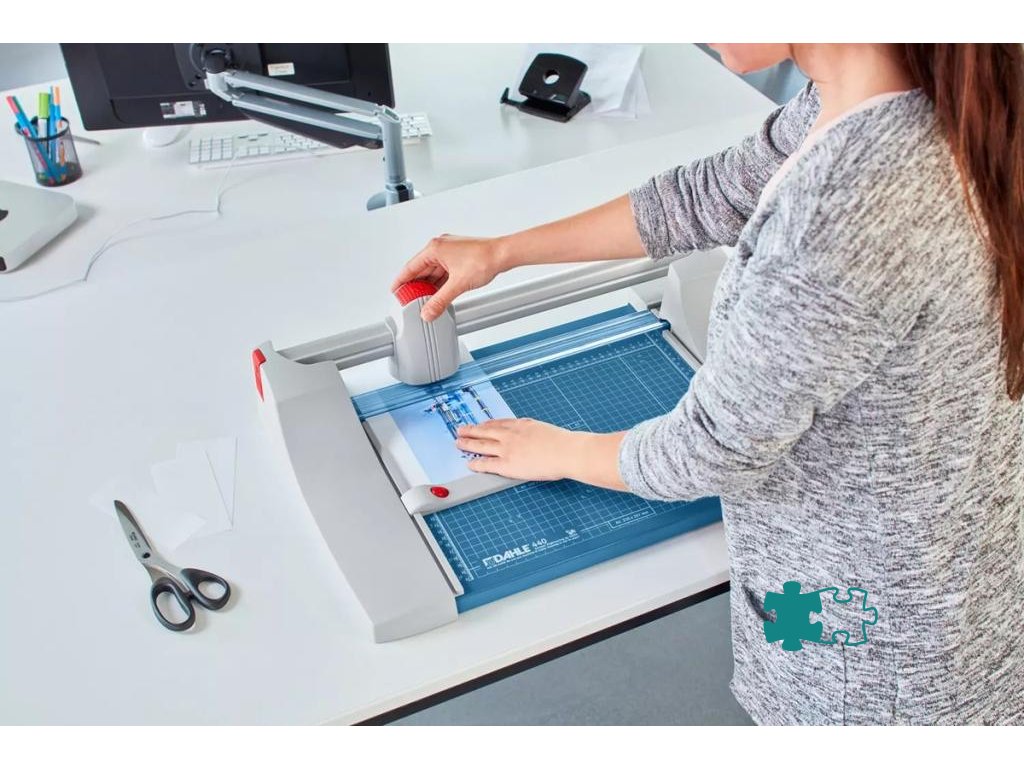 Profesionálna rezačka so stabilnou kovovou základňou s protišmykovými gumenými nožičkami pre bezpečné udržanie rotačného rezača na mieste a presným rezom na grafické účely (filmy, fólie, papier). Kvalita na dosiahnutie najvyššej presnosti - automatický prítlak pohybom rezacej hlavy, nastaviteľný zadný doraz s použitím na oba boky, množstvo zakreslených orientačných DIN formátov. Kruhový nôž umiestnený v plastovom ochrannom kryte sa automaticky brúsi pri rezaní o protinôž (oba nože z tvrdenej ocele). Mierka v cm/inch. Možnosť montáže na stenu.Dĺžka rezu: 360 mm