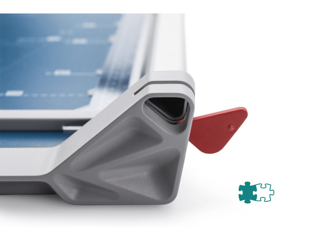 Užitočné formátovacie čiary na základni s milimetrovým delením pozdĺž reznej hrany uľahčujú zarovnanie rezaného materiálu.